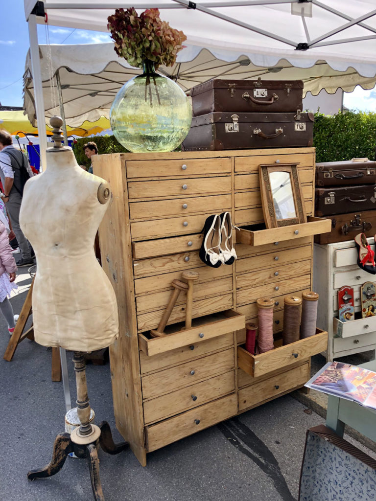 Chaque année à la période de la fête des Vendanges nous exposons à la brocante du Landeron. C’est la plus grande brocante Suisse en plein air.