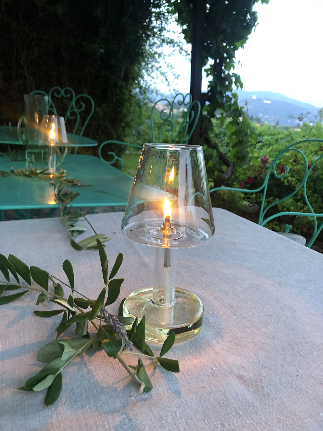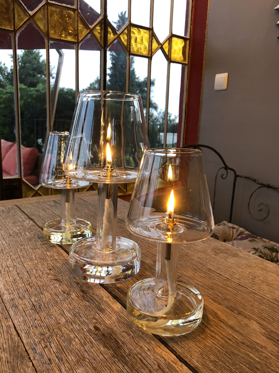Jolie seule ou en accumulation et idéal pour l’extérieur car la flamme est protégée par le verre